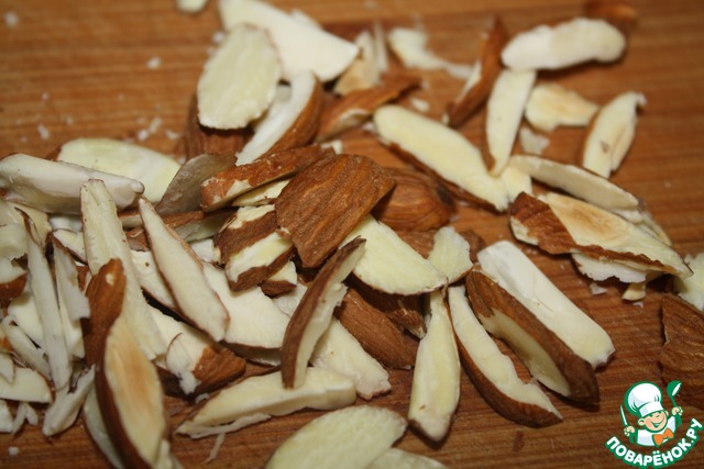 Миндаль подсушить или на сковороде или в микроволновке.