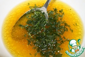 Смешать с маслом. Добавить соль по вкусу и мелко нарезаную петрушку. -