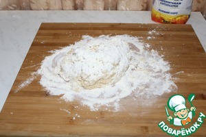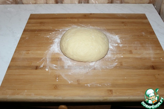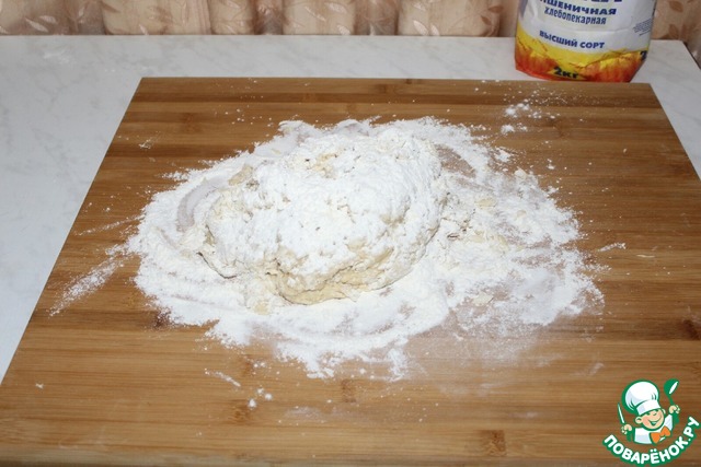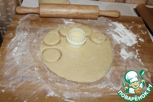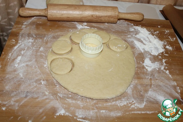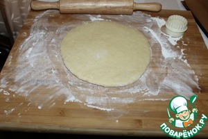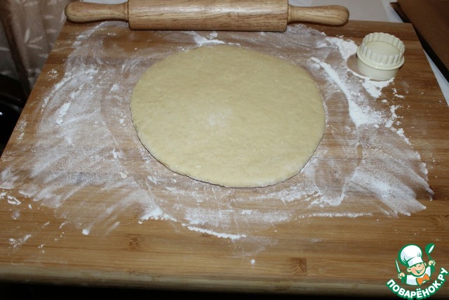 Делим тесто на две части для удобства. Раскатываем каждый кусочек теста толщиной 8 мм.