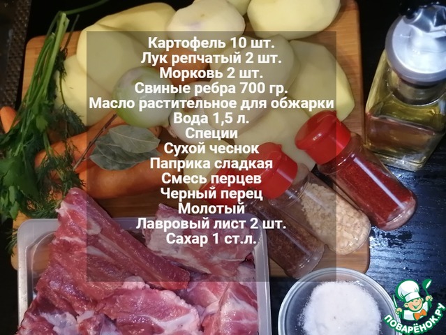 Ингредиенты для «Свиные ребрышки с тушеным картофелем»: