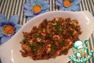 Чеснок мелко-мелко нарезаем или пропускаем через пресс. Кто как любит. -