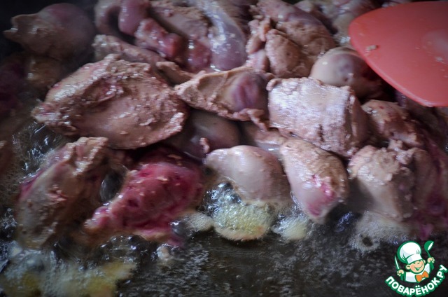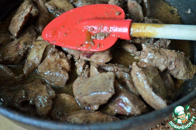 Печень нарезать средними брусками и обжарить, огонь выше среднего.