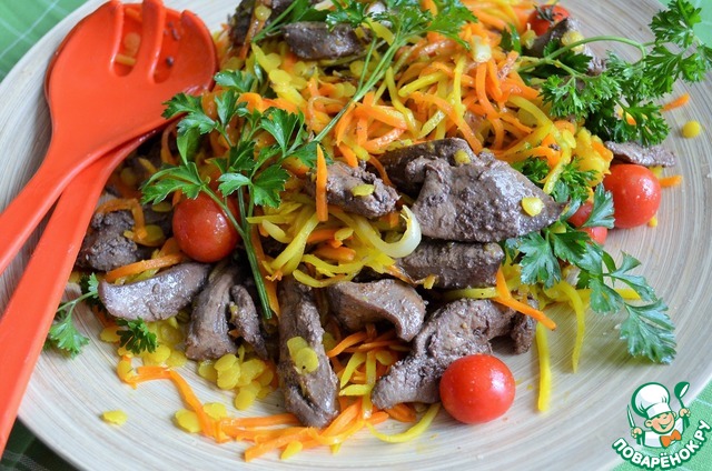 Осень, за окном прохладно и сумрачно, и часто дождь, холодный, да не один час... В такое время так хочется согреться, тарелкой супа или порцией сытного мясного горячего, а я предлагаю Вам приготовить тёплый салат с печенью индейки. Чечевица с куркумой, морковь, лук и кусочки нежной печени в соевом соусе - это ли не польза, легкость и сытость?! Три в одном... Да и красиво, ярко, аппетитно. Угощайтесь.