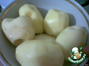 Чищу картошку, мою и через 2,5 ч кладу в кастрюлю целиком, варю вместе с мясом