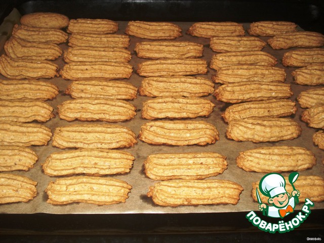 Кондитерским шприцом с широкой насадкой выдавливаем бревнышки на противень, застеленный пергаментной бумагой.