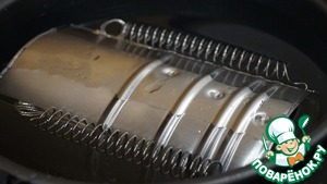 Закрываю ветчинницу, укладываю ее в мультиварку, заливаю водой и готовлю в режиме "Суп" 1,5 часа.