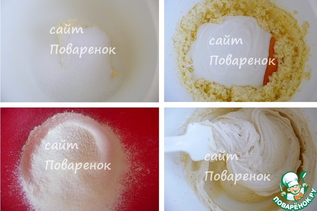 Для приготовления теста, сливочное масло взбить с сахаром, ванильным сахаром до кремообразного состояния.
