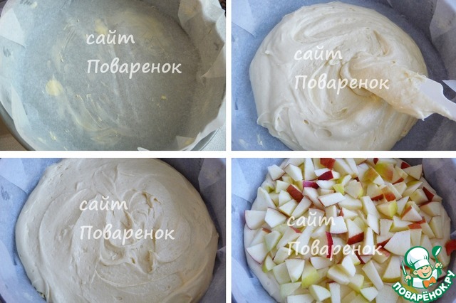 Разъемную форму 26-28см застелить пекарской бумогой (у меня спец. вкладыш, чтобы он не съезжал, на форму нанесла несколько кусочков масла), дно смазать маслом.