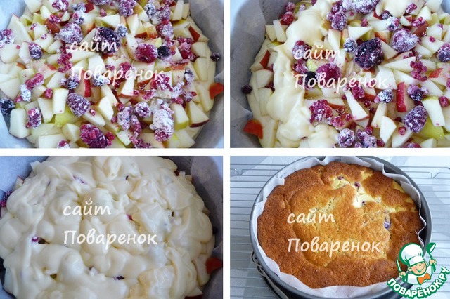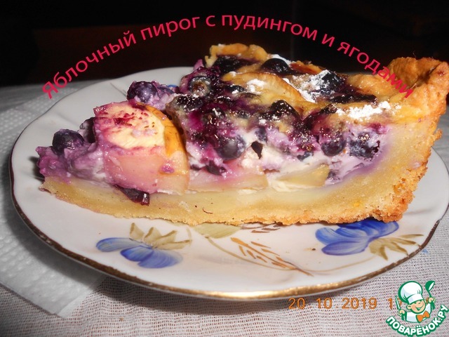 Рецепт «Яблочный пирог с пудингом и ягодами»: