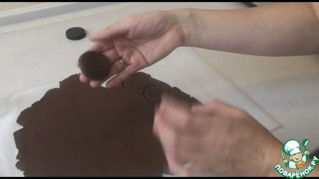 При желании можно выдавить на заготовках печенья, чтобы придать схожесть с оригинальным. Для этого я взяла оригинальное печенье и выдавила несколько печенюшек им, но это делать не очень удобно. Еще взяла крышку от обычной пластиковой бутылки с небольшим узором и выдавила с её помощью. Так мне понравилось больше.