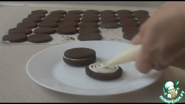 Берем одну половинку печенья, выдавливаем крем и накрываем второй половинкой. Наше Орео готово! Подаем к чаю и наслаждаемся! Приятного аппетита!
