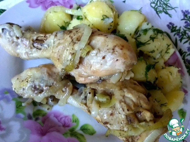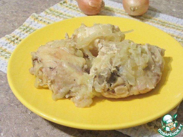 Очень сочная курочка, тушеная в собственном соку и луковом соусе.