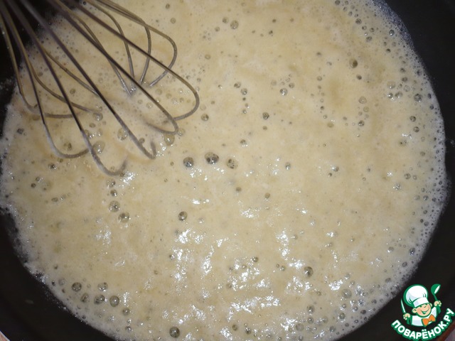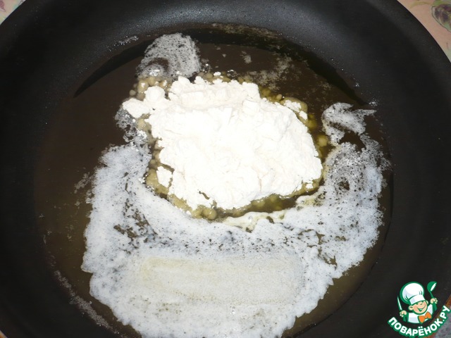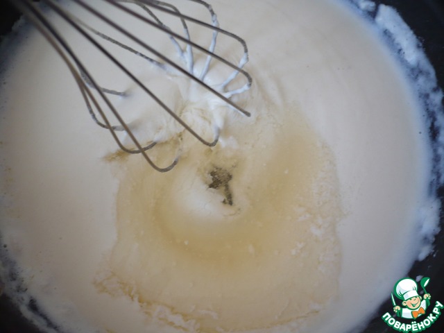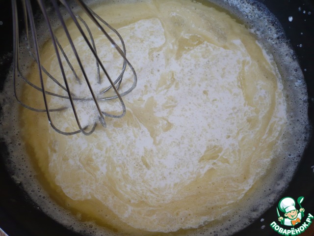 17. Вливаем 10 % сливки. Выпариваем до загустения. Добавляем соль, белый перец по вкусу. Перемешиваем.
