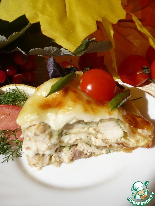 Пирог из лаваша под сырной корочкой