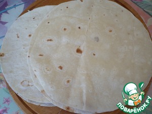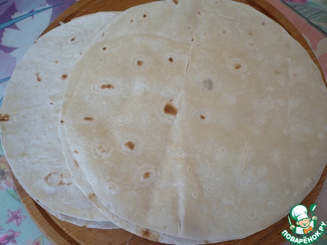 9. Теперь берем тонкий "армянский лаваш" вырезаем 4 круга по размеру сковородок.