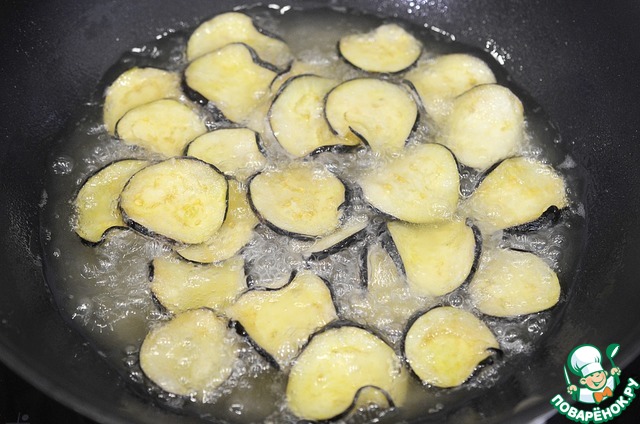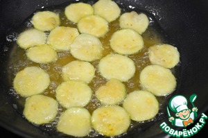 Обжаривайте в кипящем масле на небольшом огне до золотистого цвета.