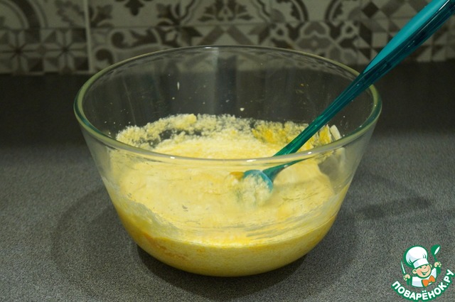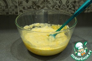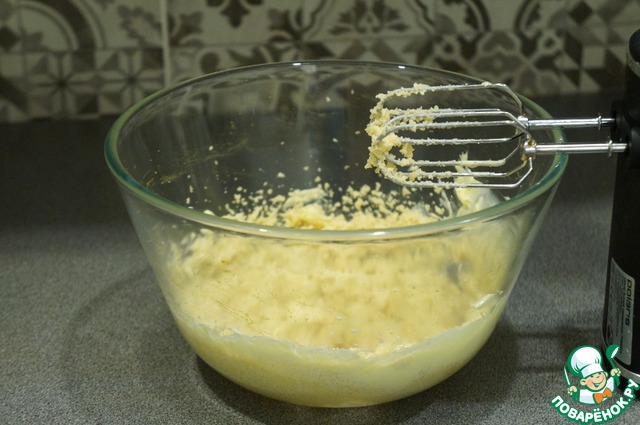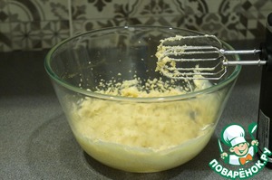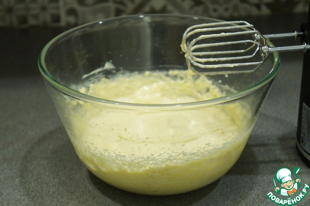 Добавлять яйца по одному, взбивая после каждого. Должна получиться светлая объёмная масса.