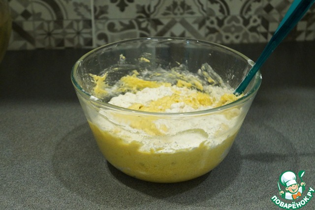 Затем всыпать мучную смесь, чередуя с молоком. Всыпать рубленные орехи.