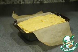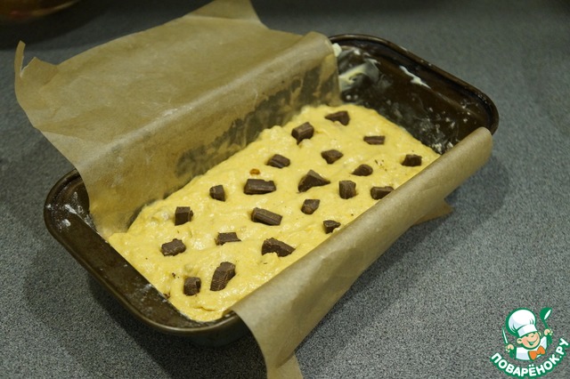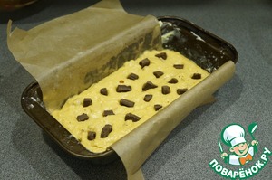 Затем ещё тесто, ещё немного шоколада и остатки теста. Отправить в духовку на час.