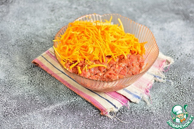 Брынзу порезать на бруски и положить ее в середину, слегка вдавливая в фарш. -