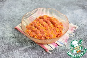 Добавить соль, перцы по вкусу, хорошо размешать.