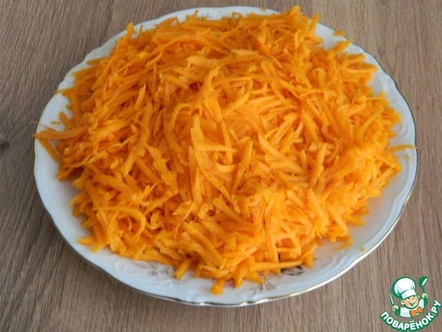 Тыкву очистим и натрем на крупной терке.