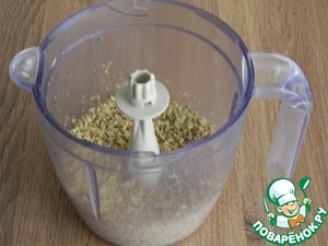 Грецкие орехи подсушим на сухой сковороде или в духовке, дадим остыть и измельчим в крошку, но не очень мелко.