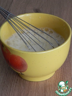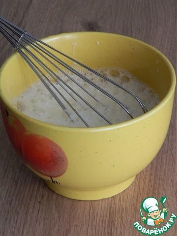 Белки взобьем с солью, к белкам добавим херес и соевый соус.