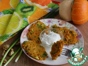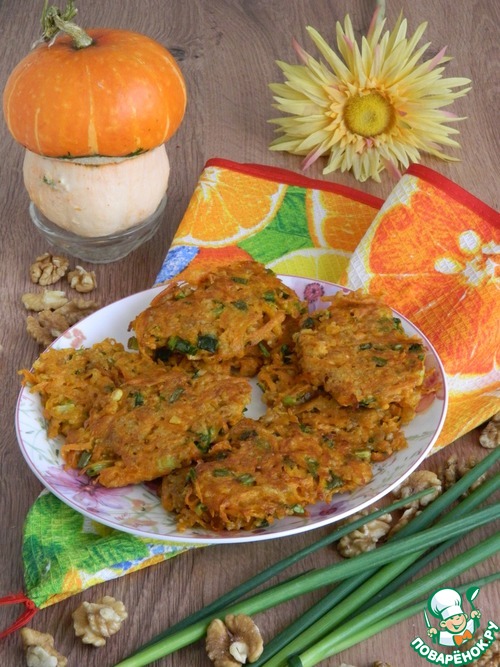 Рецепт «Оладьи тыквенные с грецкими орехами»: