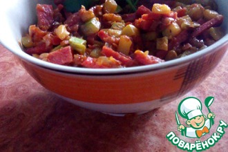 Такой салат идеально готовить в сезон ароматных грунтовых овощей. Сочетание мяса, свежих и запеченных овощей делает салат довольно сытным: он вполне может стать легким дачным ужином. Советую попробовать!