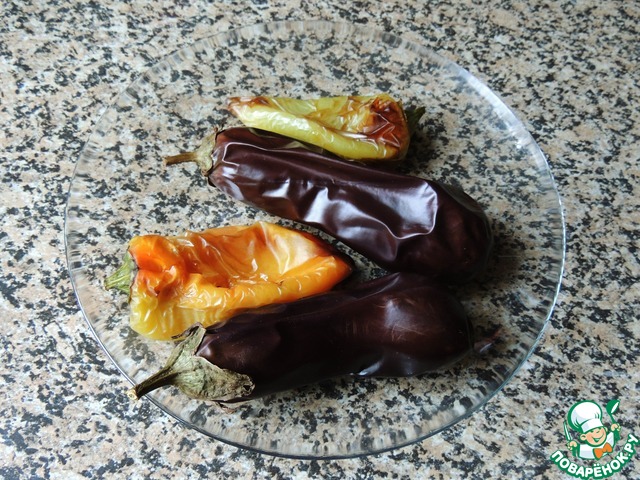 Овощи помыть, баклажаны обязательно наколоть вилкой (во избежание взрыва). Запекать в духовке на решетке 15-20 минут при 180 градусах.