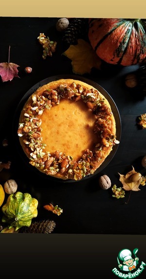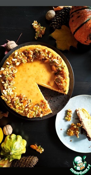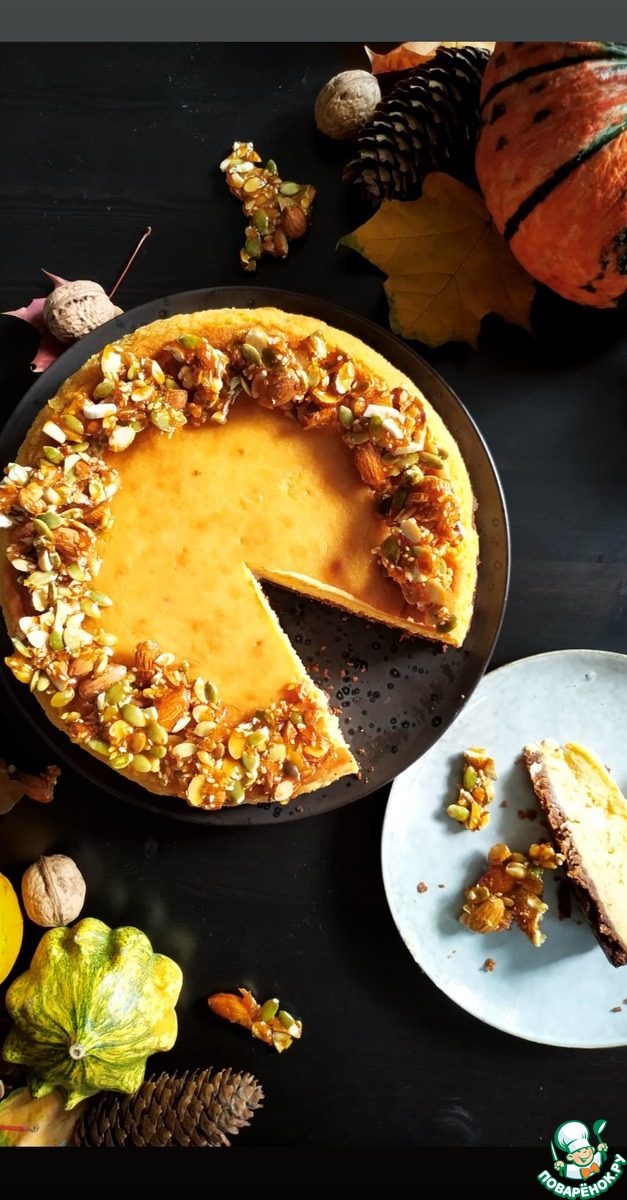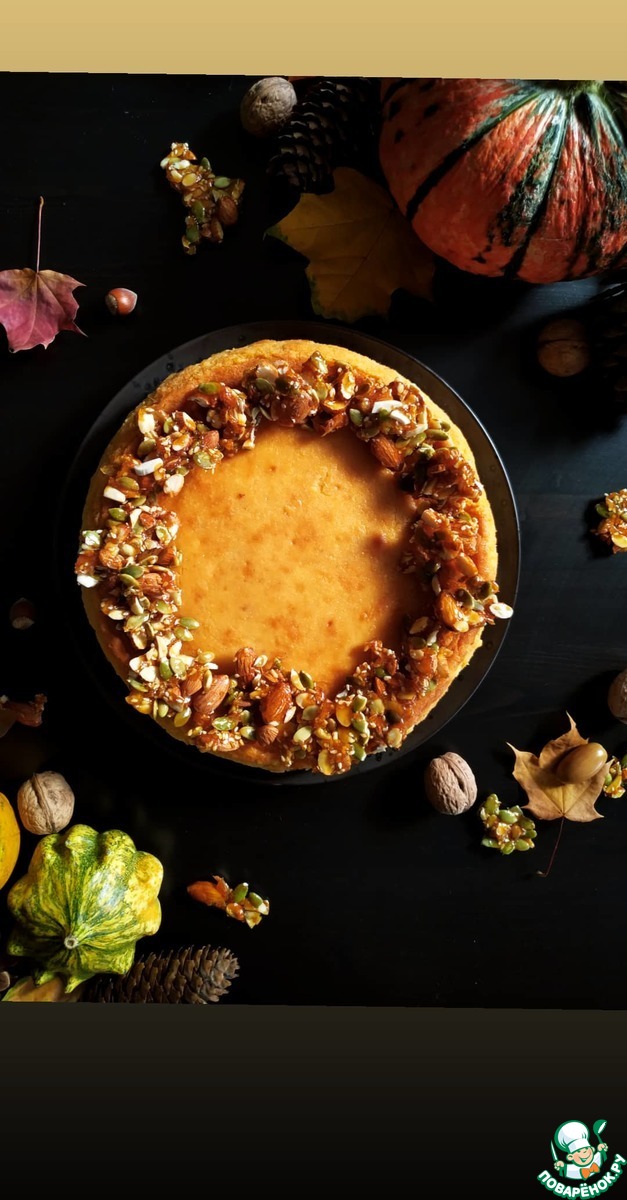 Чиз. Сливочный сыр взбить 30 секунд, добавить к нему тыквенное пюре, смешать. Не взбивать! Только смешиваем до однородности на низких оборотах миксера (насадка лопатка) или венчиком. Далее добавляем по очереди сахар, яйца, сметану, каждый раз хорошо смешивая. Далее добавляем муку, специи, экстракт. Хорошо смешиваем не взбивая. Будете взбивать в массе будет много воздуха и чиз треснет при выпекании. Выливаем чиз на основу и ставим выпекаться на 1 час.