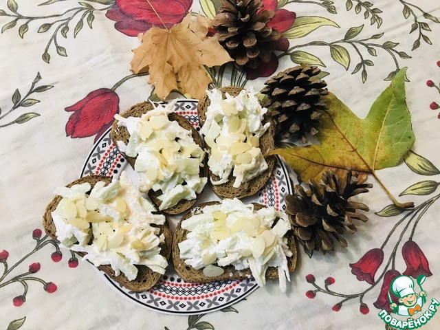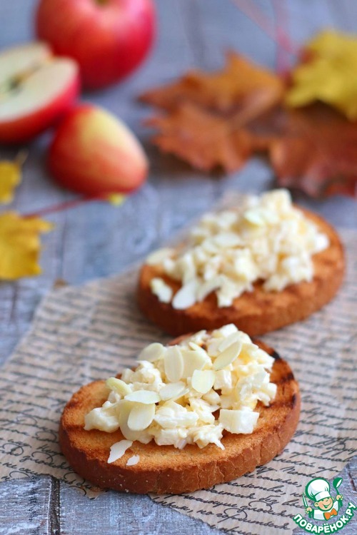 Десерт добавить на обжаренные тосты, сверху посыпать лепестками миндаля.