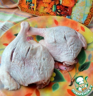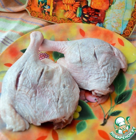 • Утиные ножки промыть, обсушить бумажным полотенцем,