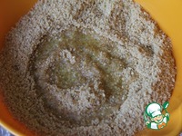 Выстелить бумагой разъемную форму (диаметр моей - 22 см). Выложить крошку с маслом и хорошо утрамбовать. Запечь в разогретой до 170 градусов духовке около 8 минут. |