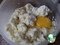Готовим творожную массу (я брала обычный творог 9%): творог смешать с сахаром, ванильным сахаром и яйцом. Размешать. |