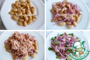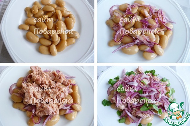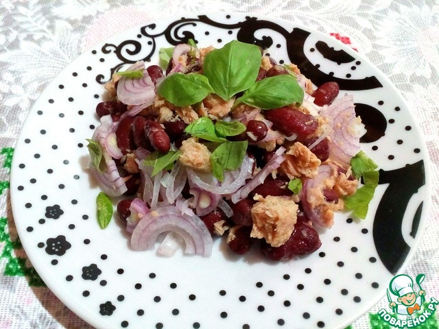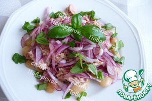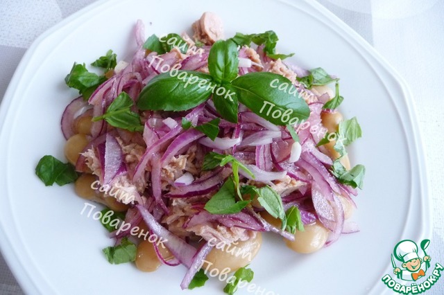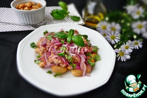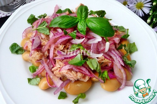 Хочу предложить приготовить вкусный, сытный салат из консервированного тунца и белой фасоли. Салат готовится очень быстро. Получилось, сочно, ароматно. За основу взяла рецепт от Юлии Высоцкой, спасибо огромное за идею.
