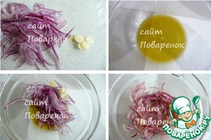 Лук почистить и нарезать полукольцами, как можно тоньше.