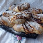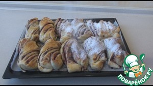 Готовые булочки оставляем немного остыть и посыпаем сахарной пудрой.