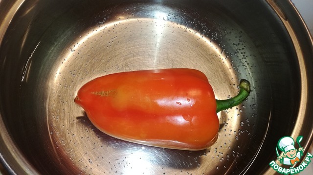 Налейте в кастрюлю воду и доведите до кипения. Положить в кастрюлю болгарский перец и варить 5-7 минут. Достать, остудить и почистить от кожуры.