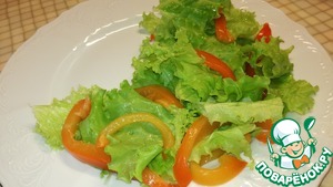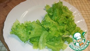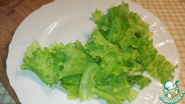 Листья салата порвать произвольно руками и выложить на блюдо для подачи.