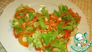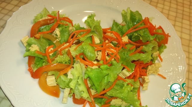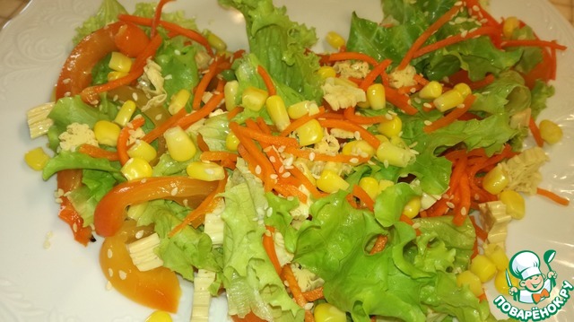 Приготовление салата с болгарским перцем, кукурузой и корейской морковью не займёт у Вас много времени, а результат порадует и разнообразит меню.