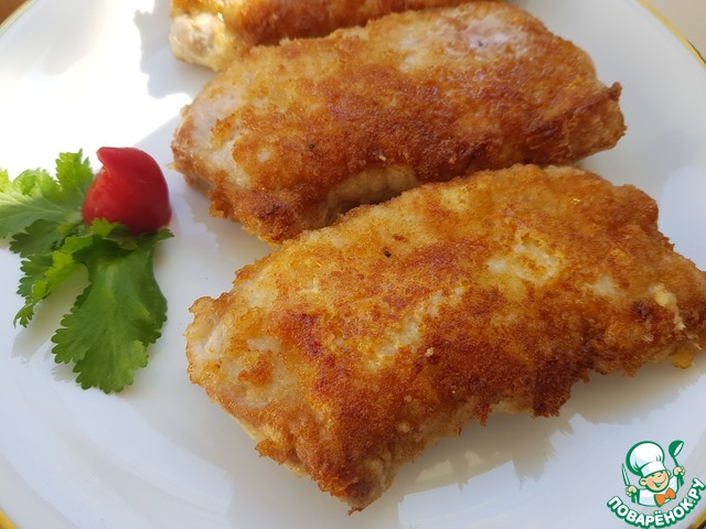 Готовится очень быстро с малой затратой продуктов. Отбивные очень нежные с хрустящей сырной корочкой.