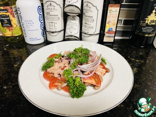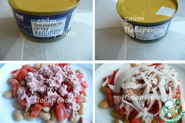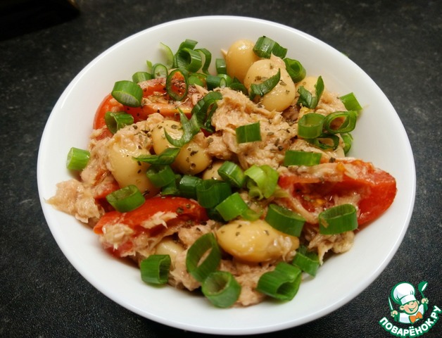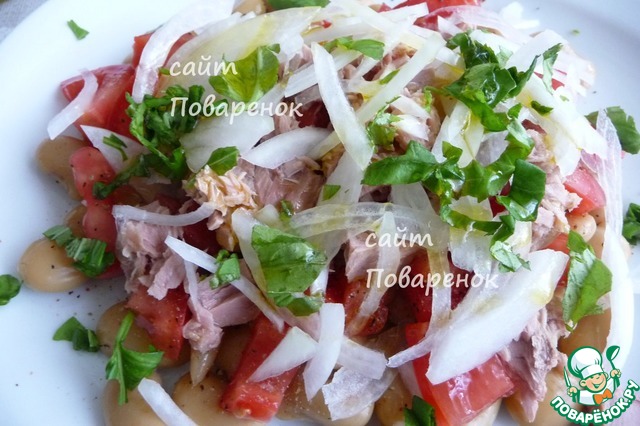 Рецепт «Салат с тунцом, фасолью и помидором»: