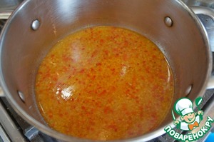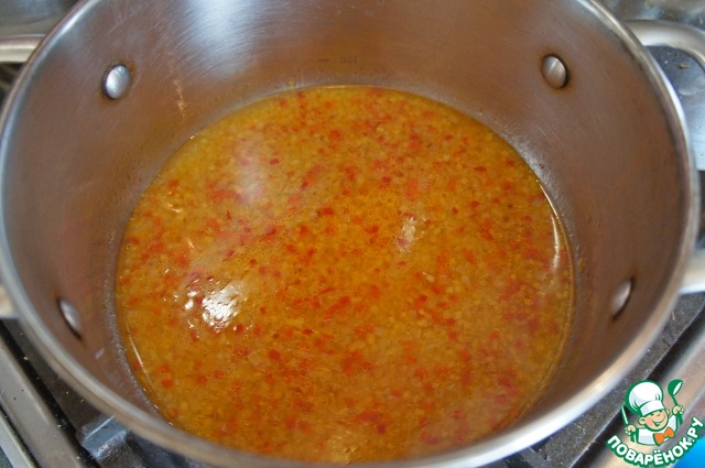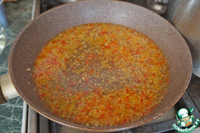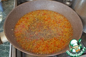 Переложить зажарку в небольшую кастрюлю, влить туда 0,5 л воды и протушить.