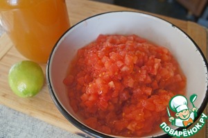Тушеные овощи смешать с томатами и варить 15 минут на среднем огне. Добавить мед и сок лайма, соль по вкусу и тщательно перемешать.