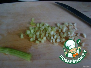 Теперь режем их маленькими кубиками (тогда вкус сельдерея не будет слишком резким и навязчивым)