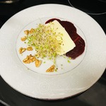 Ну и, наконец, сборка. Аккуратно разместим на тарелке свеклу. Помните, что она окрашивает в розовый цвет всё с чем соприкасается. Это может быть тарелка, белый сыр, или ваши руки.