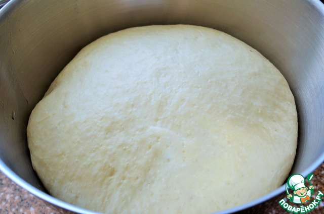 Подошедшее тесто обмять, разделить на 13-14 одинаковых частей.