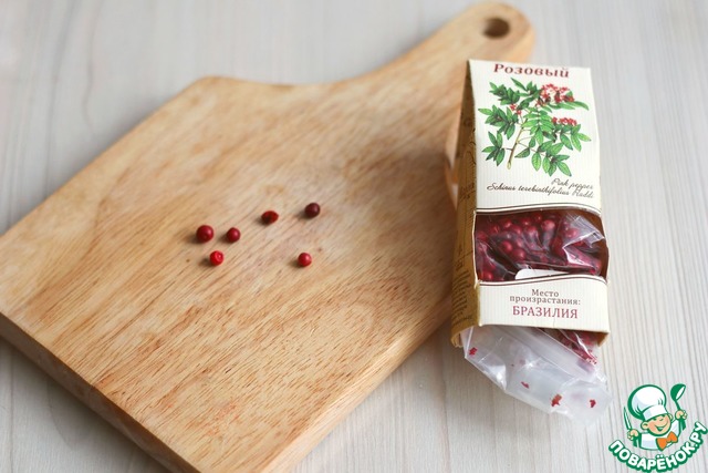 Розовый перец (6-7 гор.) Раздавить ножом или растереть в ступке.